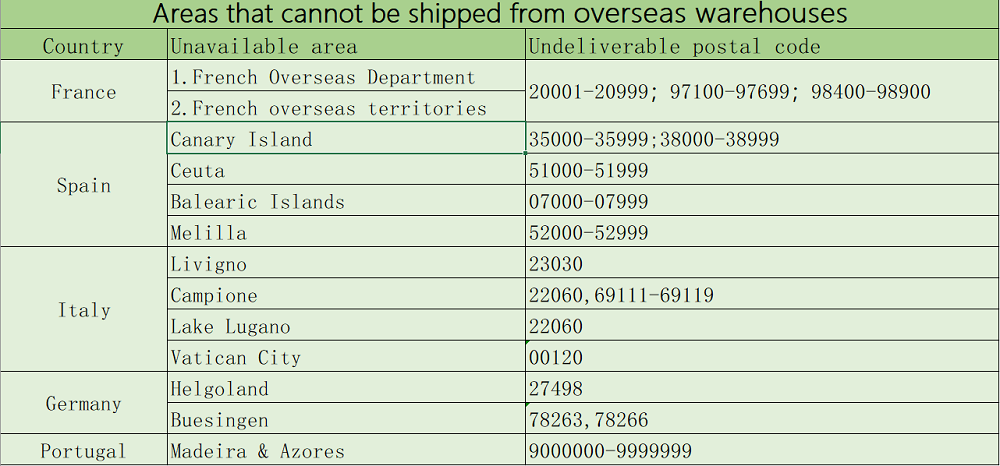 5. Some remote areas cannot be delivered, please do not buy through overseas warehouses. For more information, please refer to the picture below.