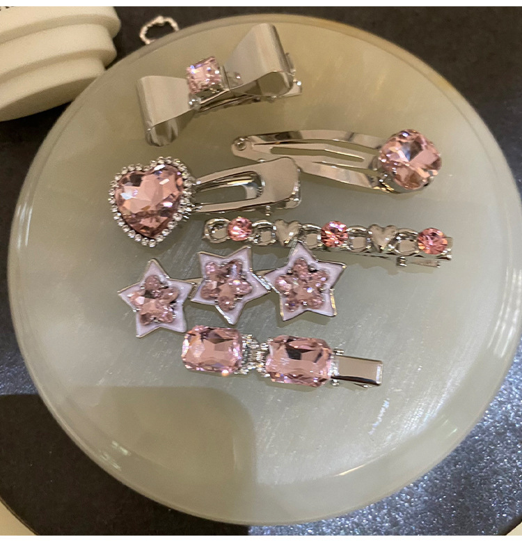 Barbie pink heart star rhinestone hair clips sweet cool girl wind metal bangs side clip new hair card hair accessories