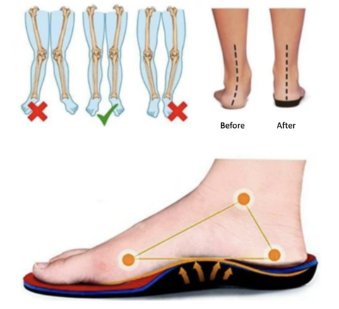 Our premium insoles, featuring anatomical arch support help improve foot and leg alignment, eliminate the Pain caused by flat feet, poor walking posture & plantar fasciitis.