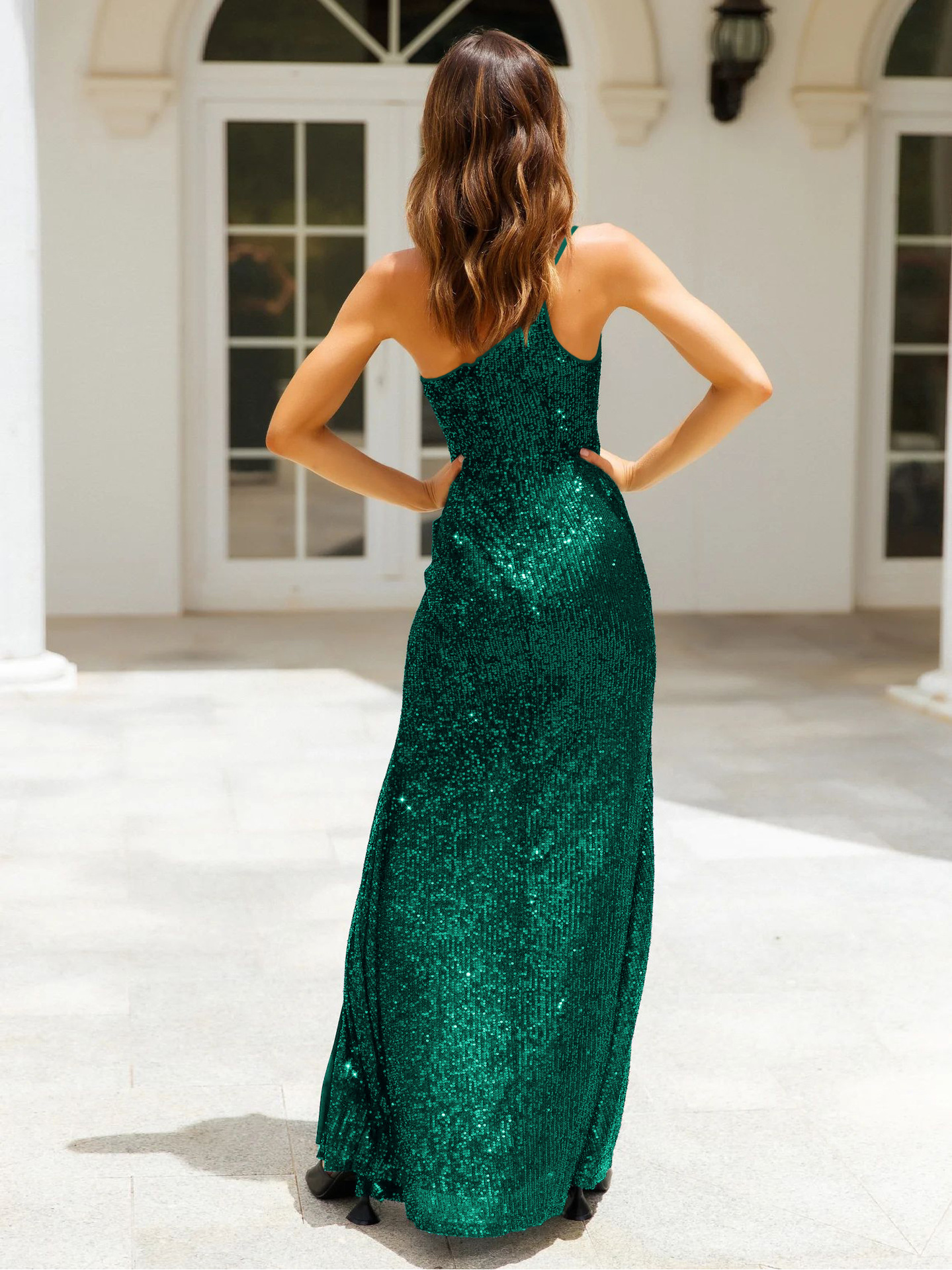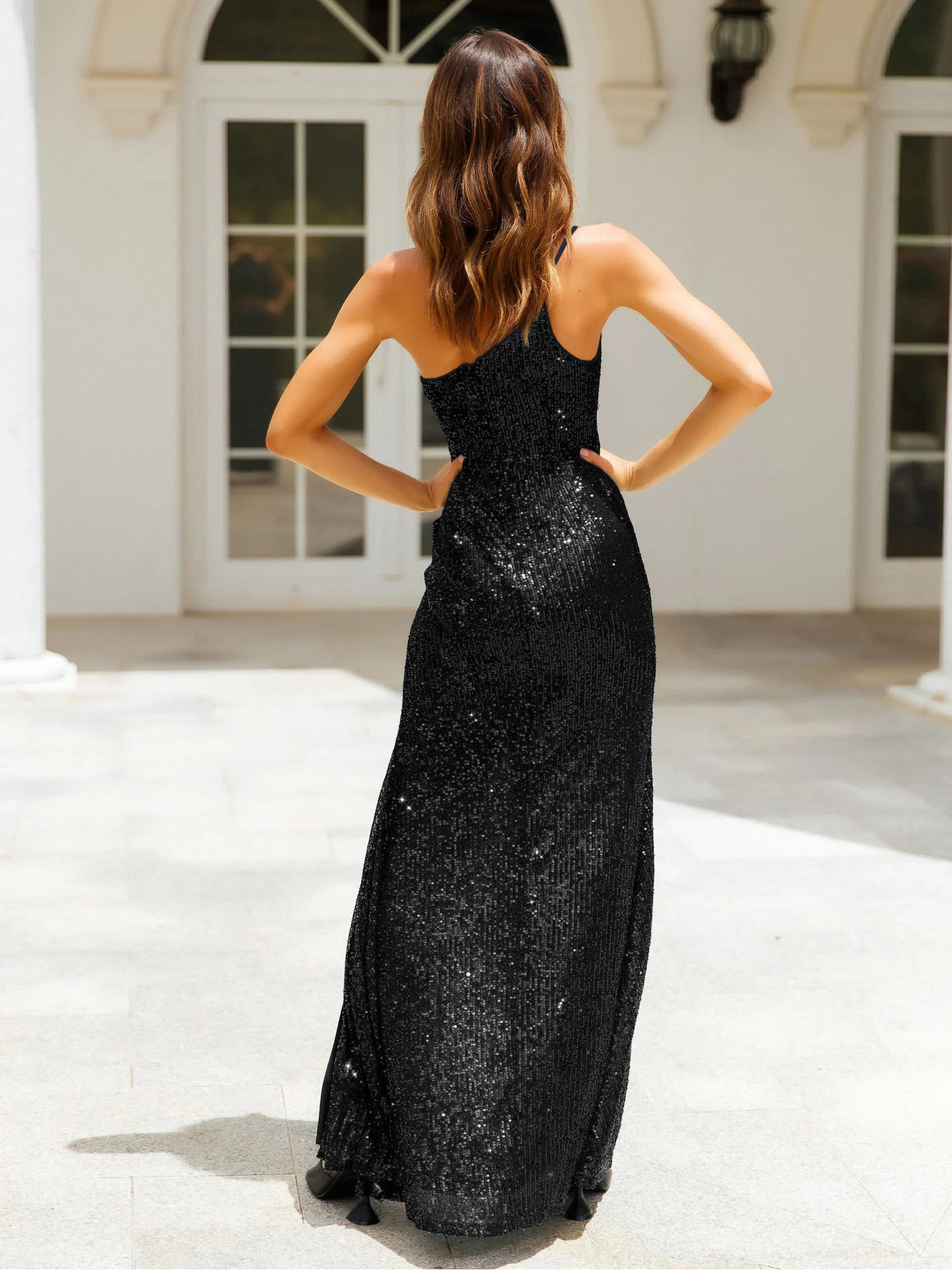 Burst bead halter dress European and American women's sequin dress sexy nightclub dress wedding evening dress