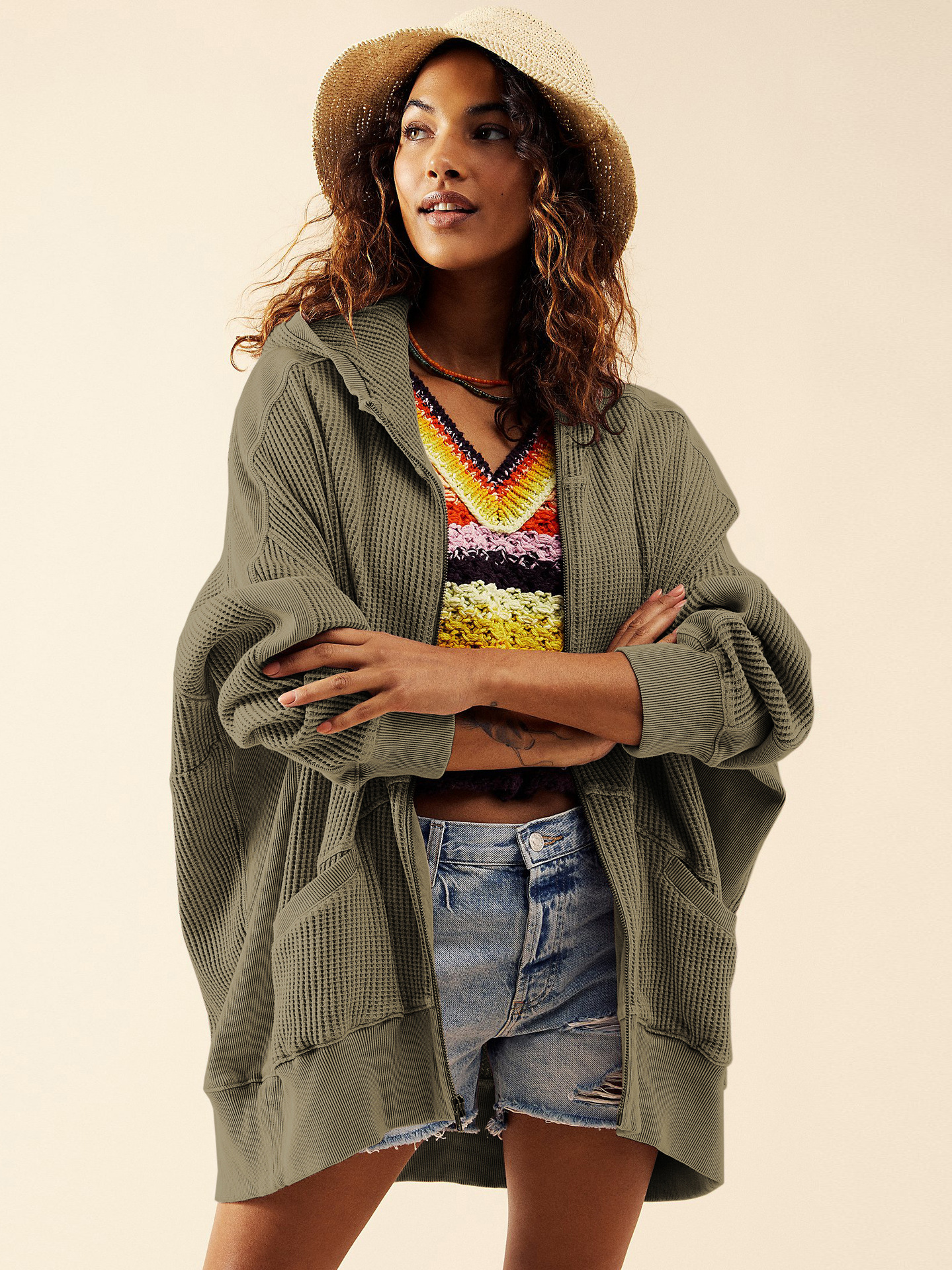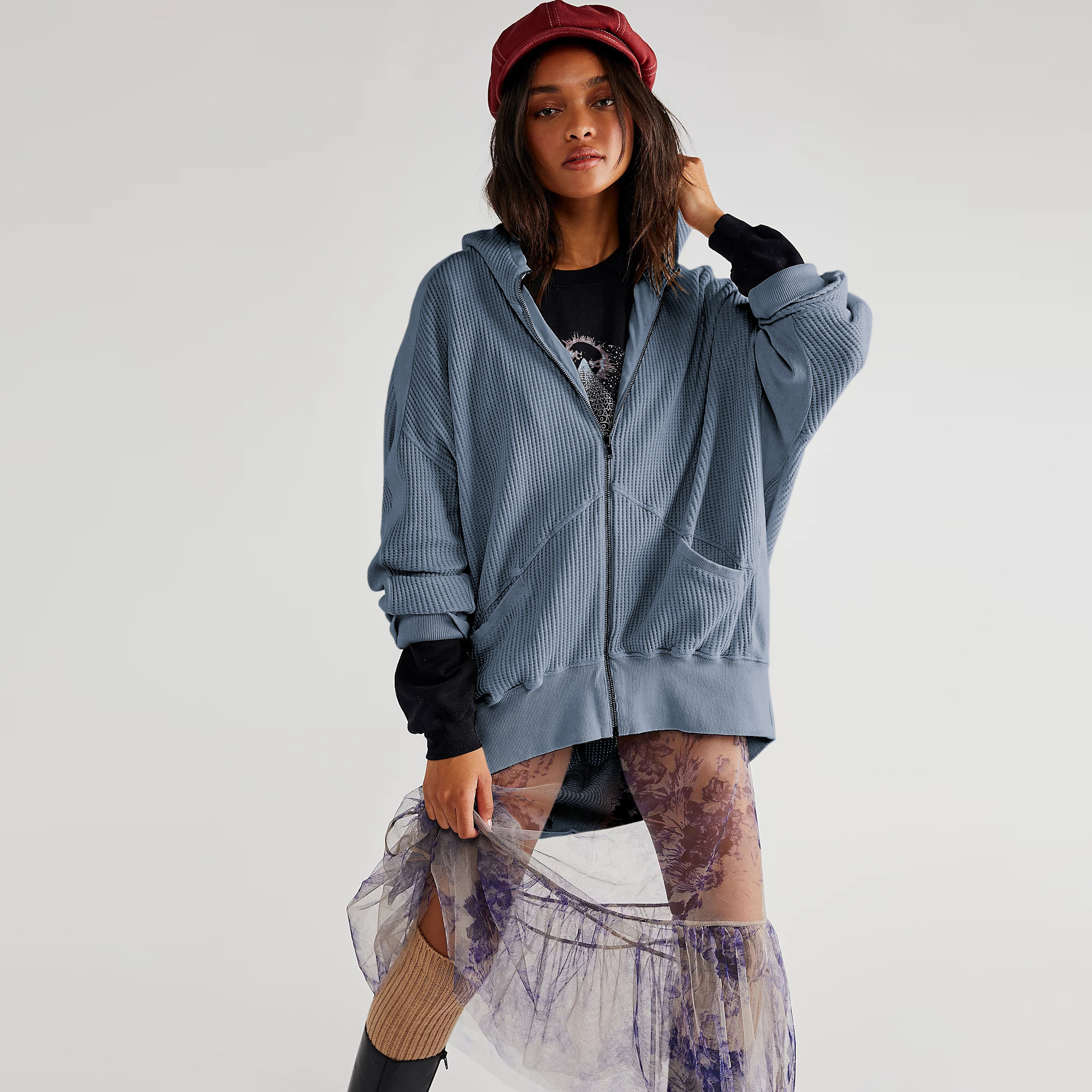 Cardigan zipper hoodie cross-border explosion home wear women's hoodie long coat