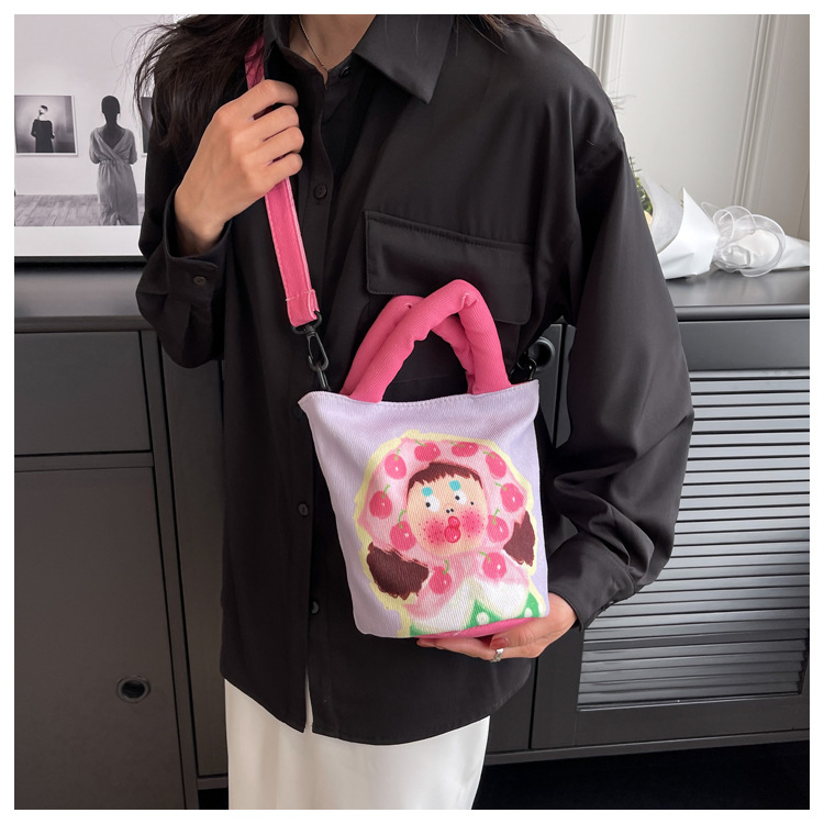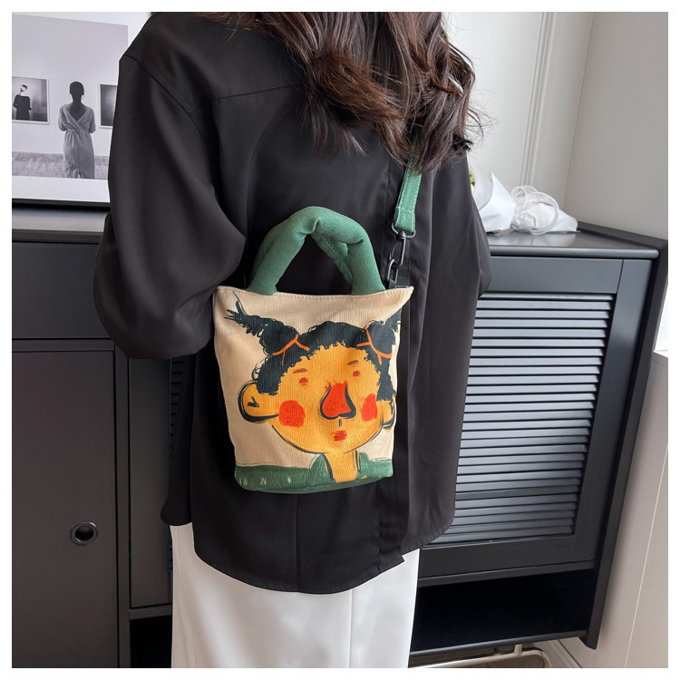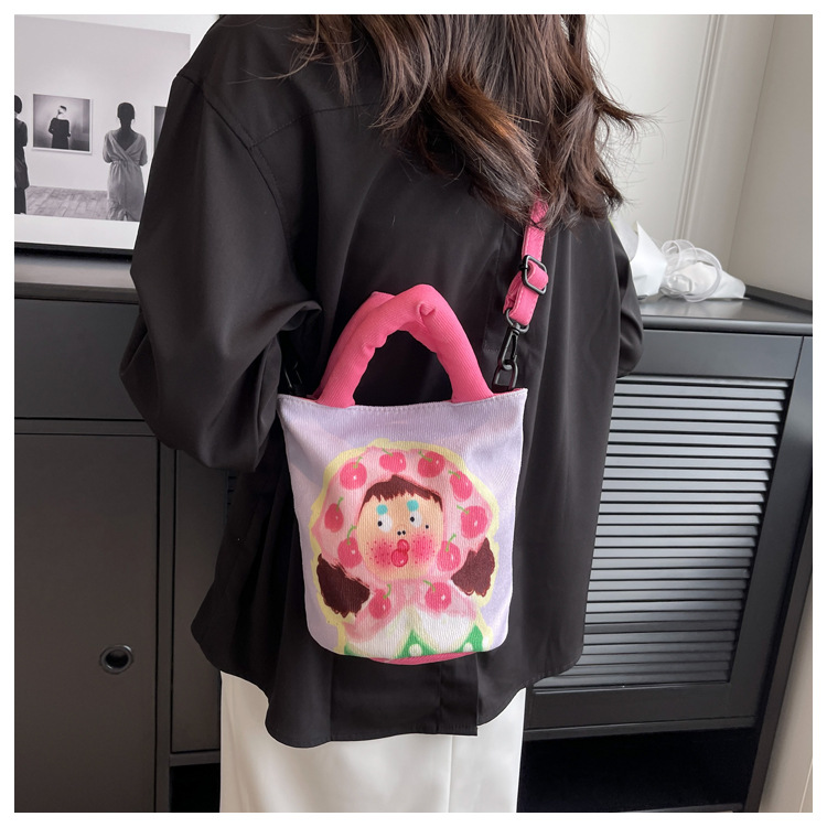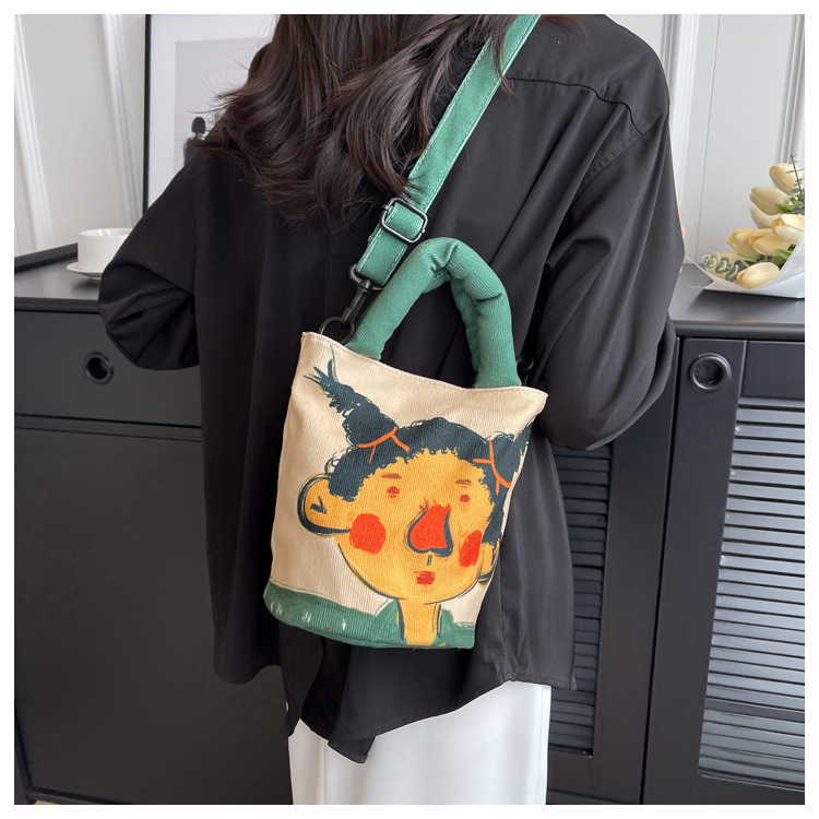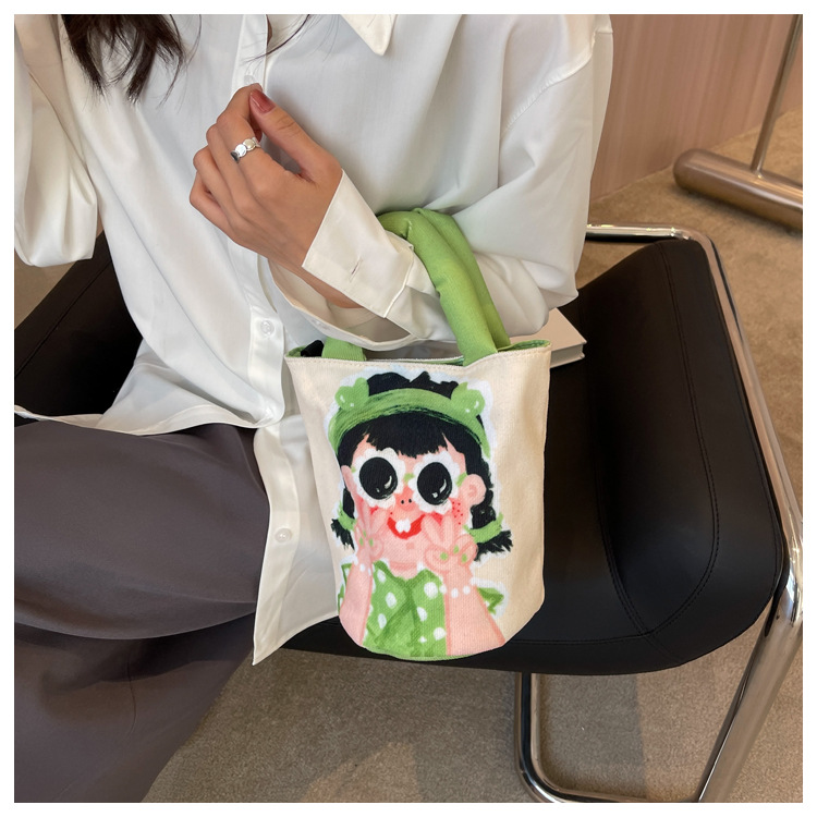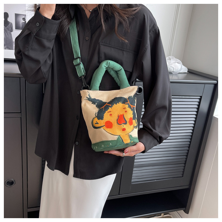 Cartoon Graffiti Bucket Bag Bag 2022 New Bucket Bags Niche Design Tote Shoulder Crossbody Women's Bag Small Bag