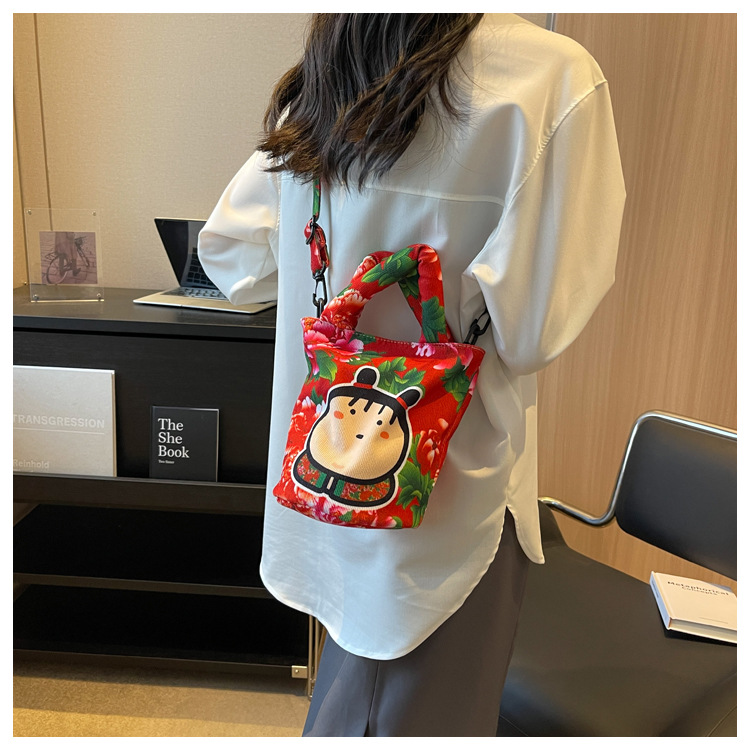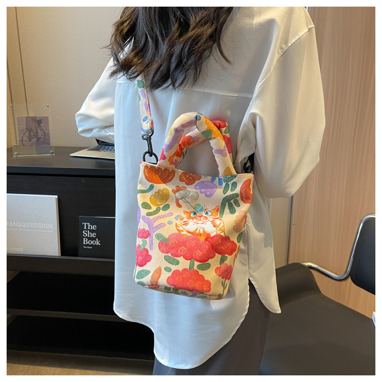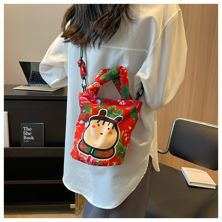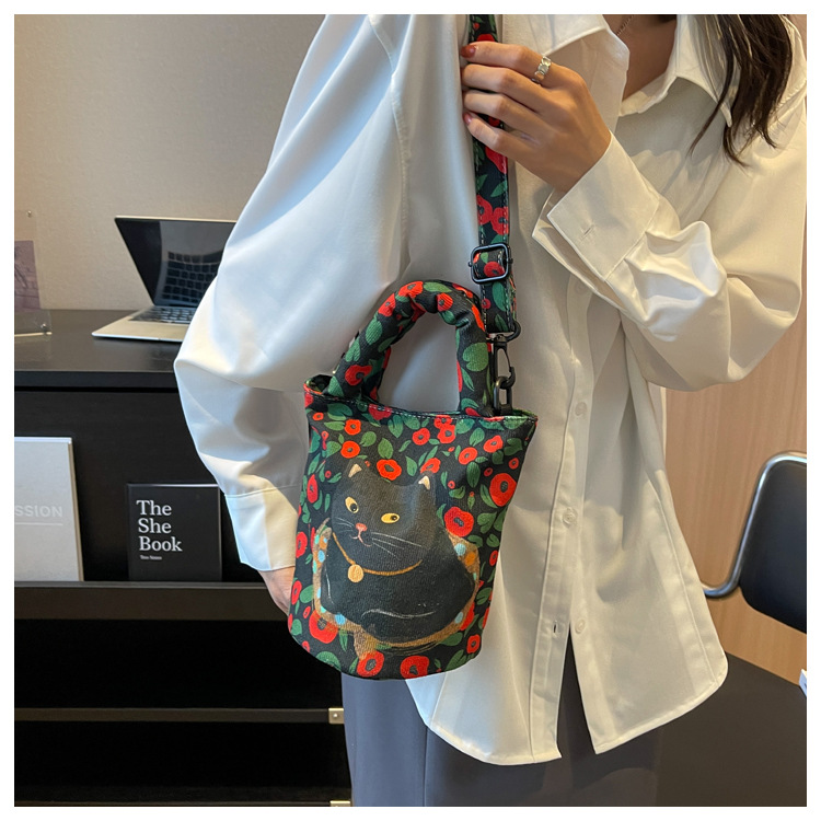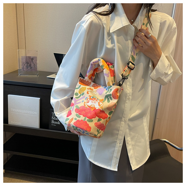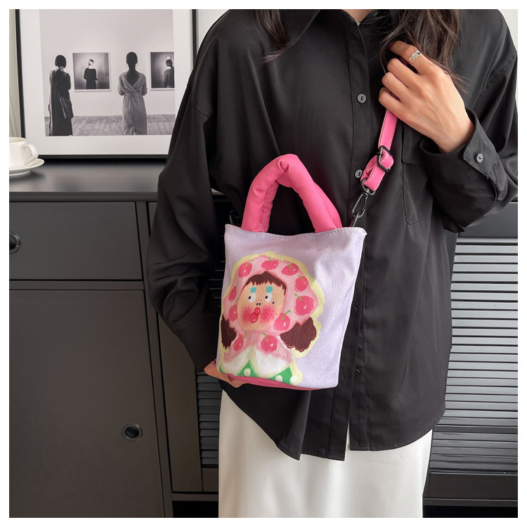 Cartoon Graffiti Bucket Bag Bag 2022 New Bucket Bags Niche Design Tote Shoulder Crossbody Women's Bag Small Bag