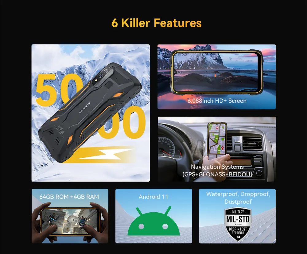 Cubot KingKong 6 IP68 Waterproof Rugged Smartphone 4GB RAM 64GB ROM 5000mAh Battery NFC 4G Dual SIM Android 11 Cell Phone