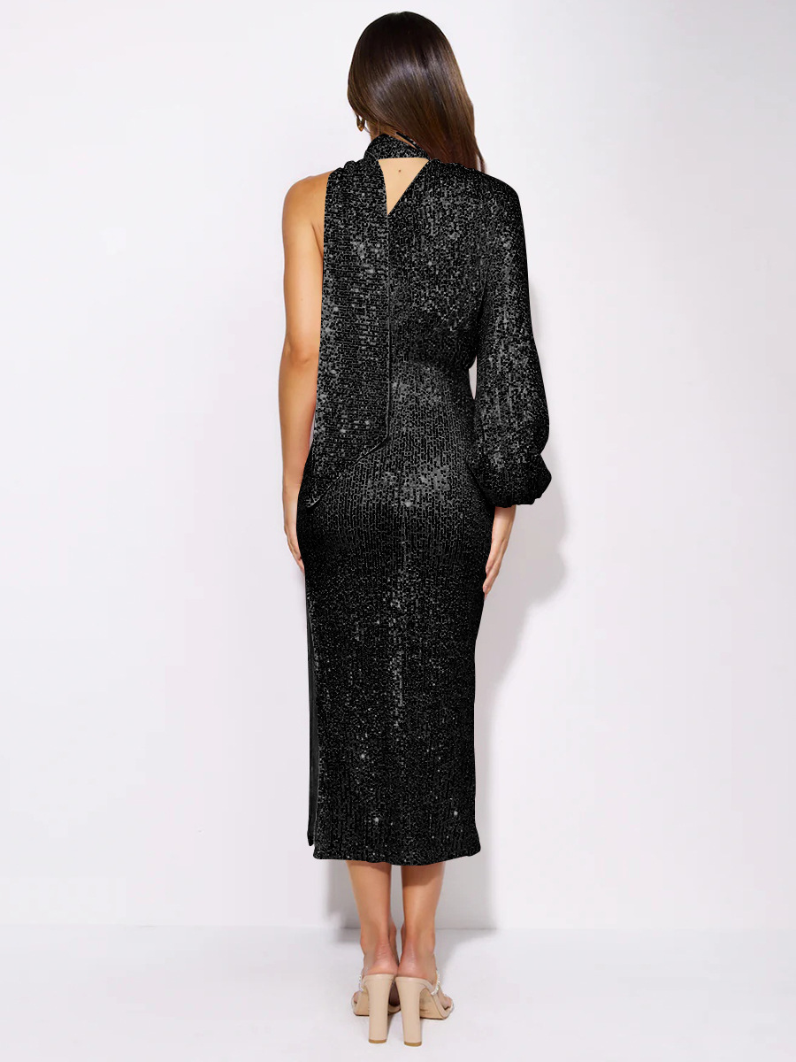 Explosive sequin dress European and American women's dress design sense scarf beaded long dress nightclub wedding evening dress