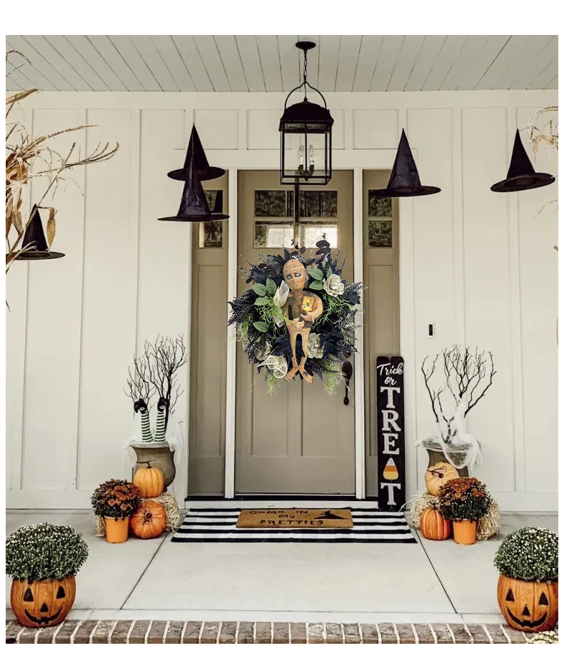 [Halloween Sale]Halloween mummy wreath cross-border pop horror atmosphere Halloween decoration front door hanging crafts