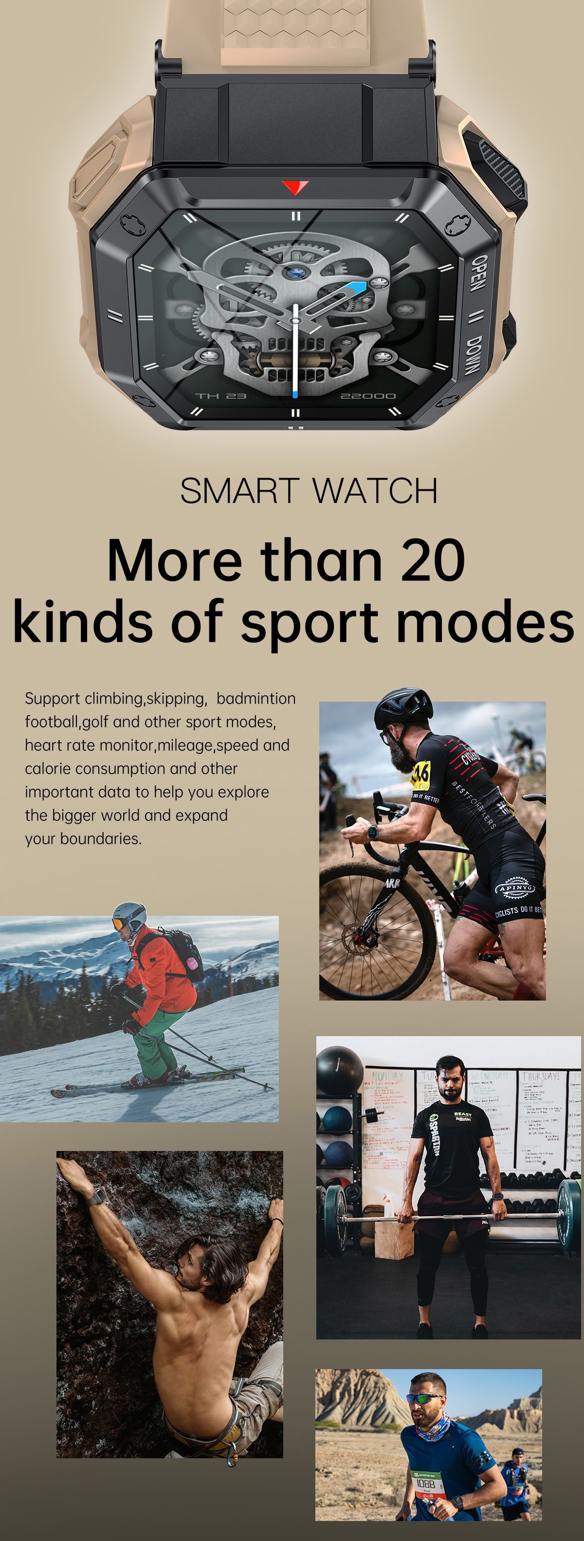 K55 new outdoor smart watch Bluetooth call heart rate blood pressure blood oxygen stopwatch music multi-sport modeAs low as $42.99