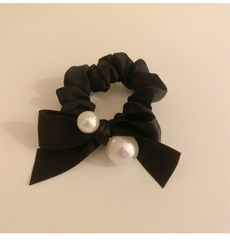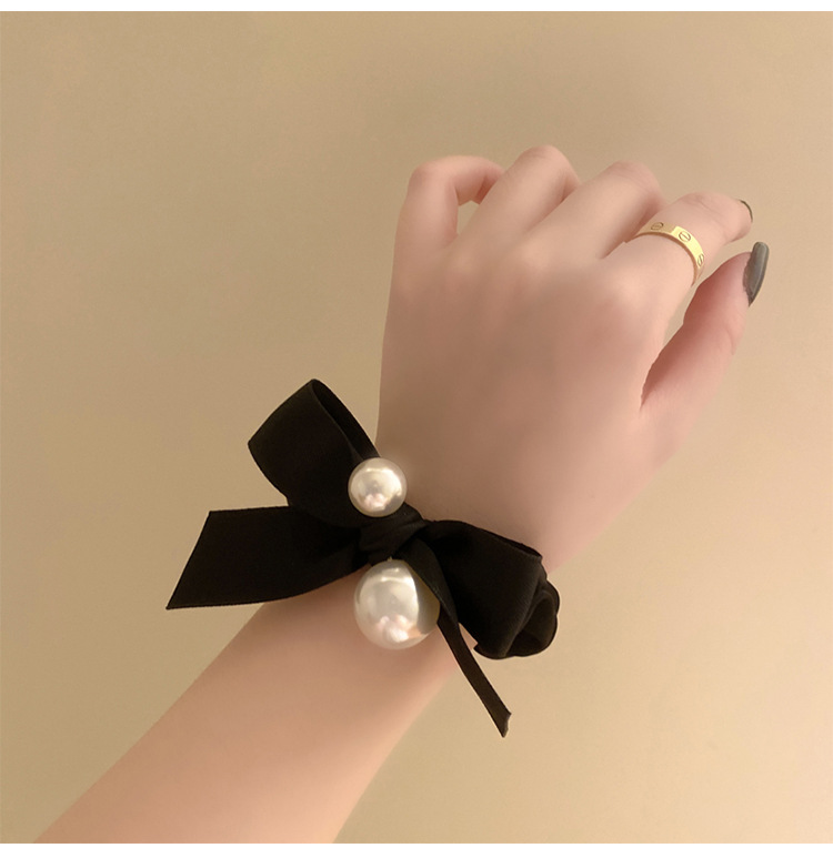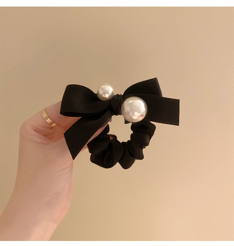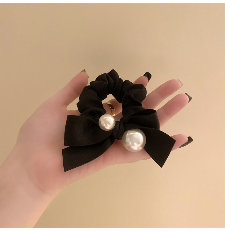 Korean version of the simple pearl bow hair band head rope advanced sense of leather band female hair tie holster temperament elegant hair rope