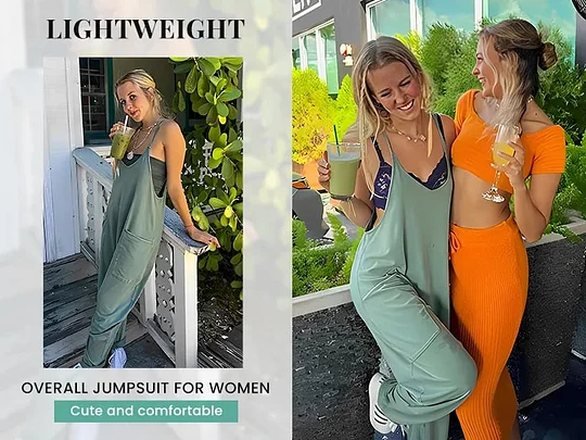 Sleeveless Loose: one-piece sleeveless jumpsuits, long pants jumpsuit, loose fit, casual and baggy style.