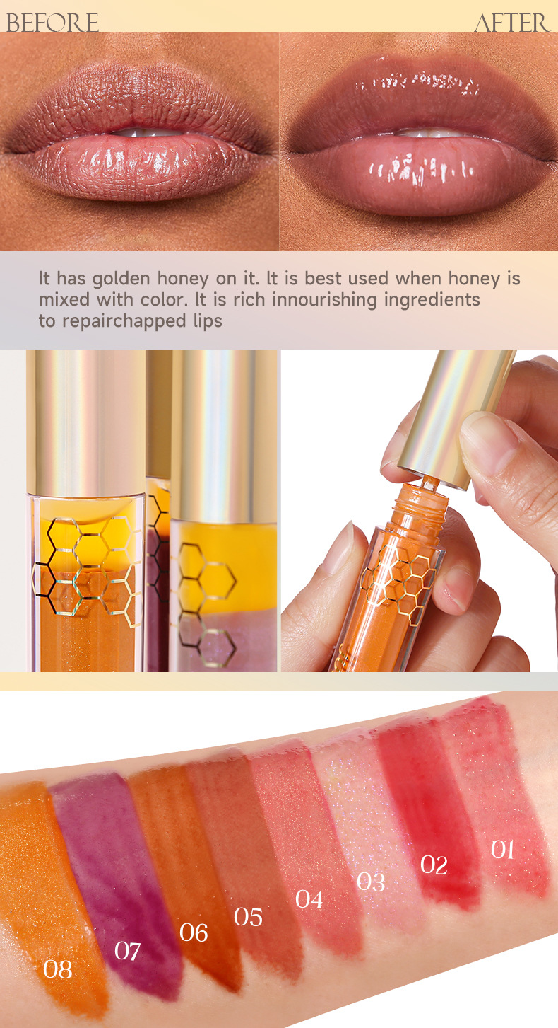 Layered Honey Lip Glaze Nourishing Moisturizing Fine Glitter Pearl Lip Gloss Honey Lipstick