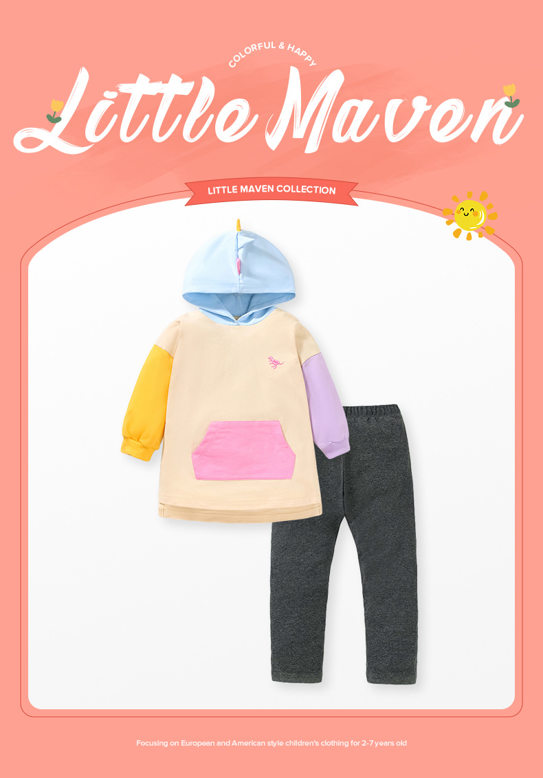 Little maven autumn new middle and young children girls sweater suit Europe and the United States color combination hooded children's pants suit