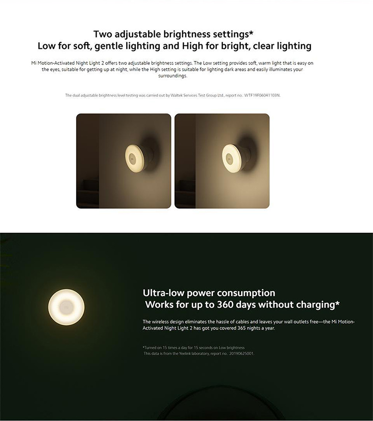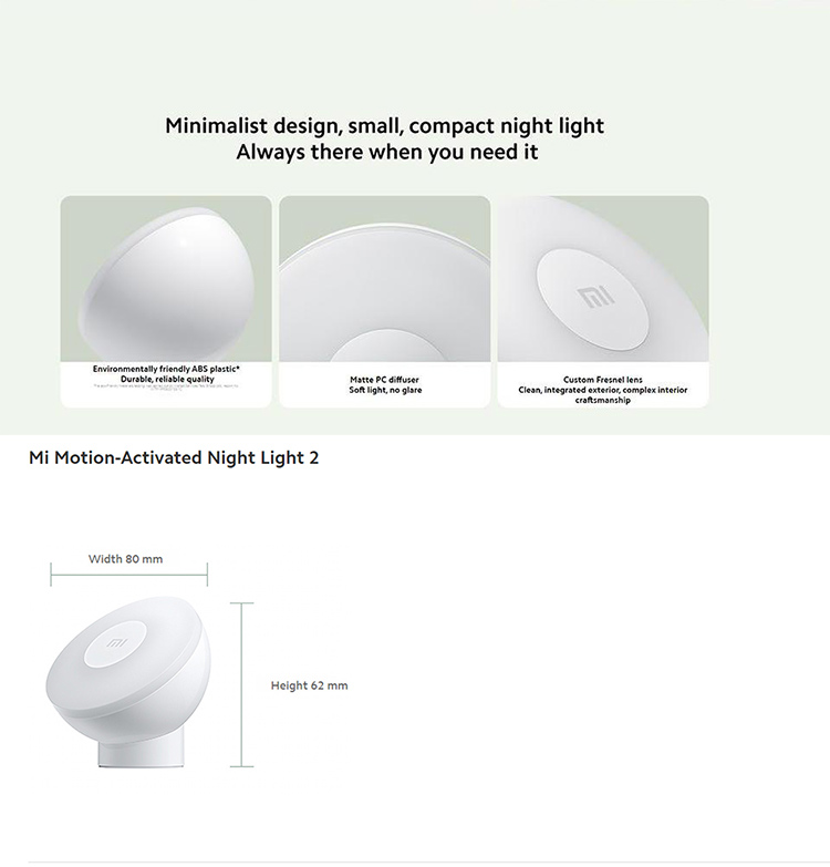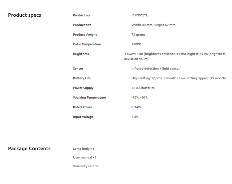 | Package Contents | Mi Motion-Activated Night Light 2, user manual, warranty card | |||