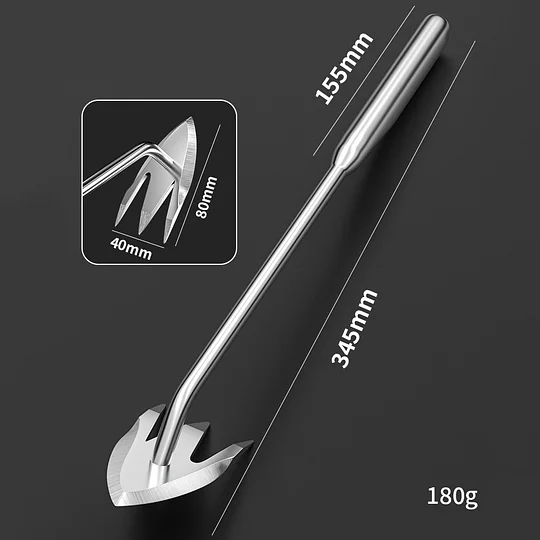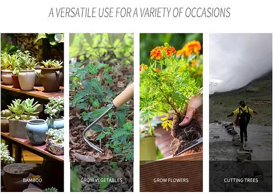 Loosen the soil - The tool is compact and can loosen soil for farmland, courtyards, and potted plants, which can improve the soil, deepen the plow layer, eliminate pests and diseases, remove weeds, and also have the function of storing water, and preventing floods and droughts.