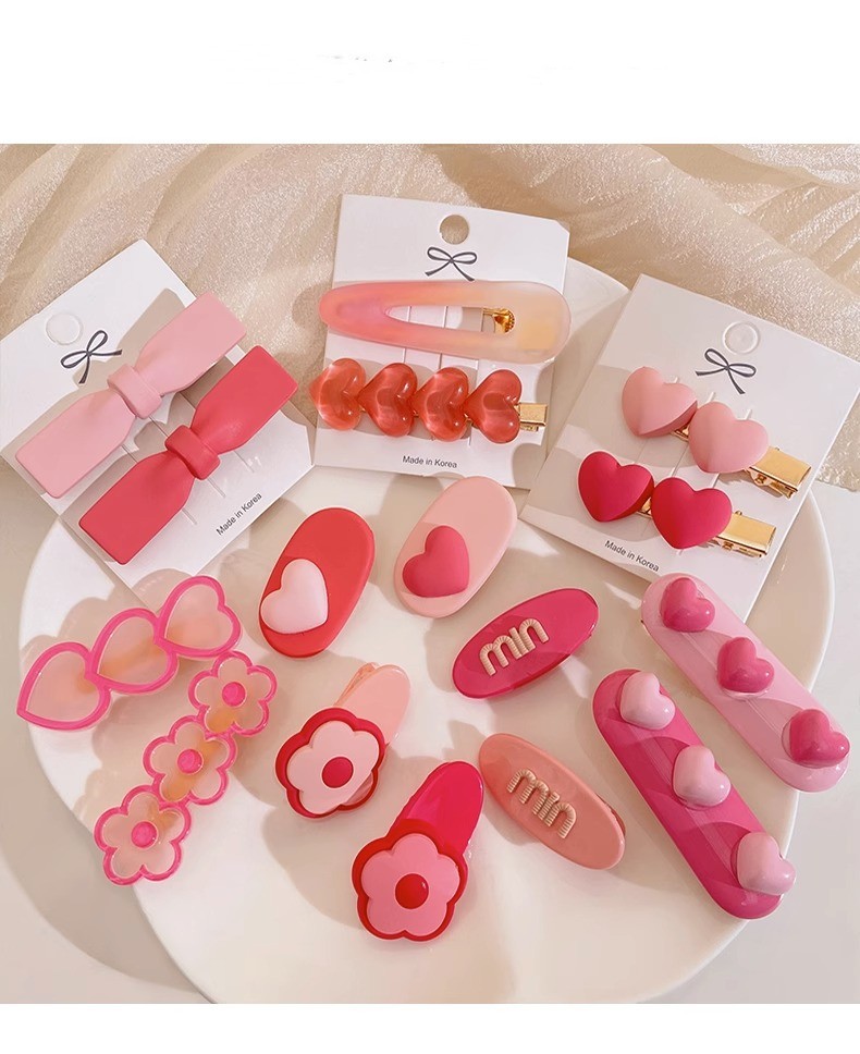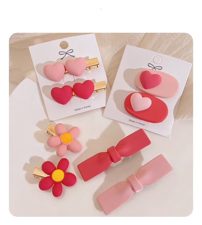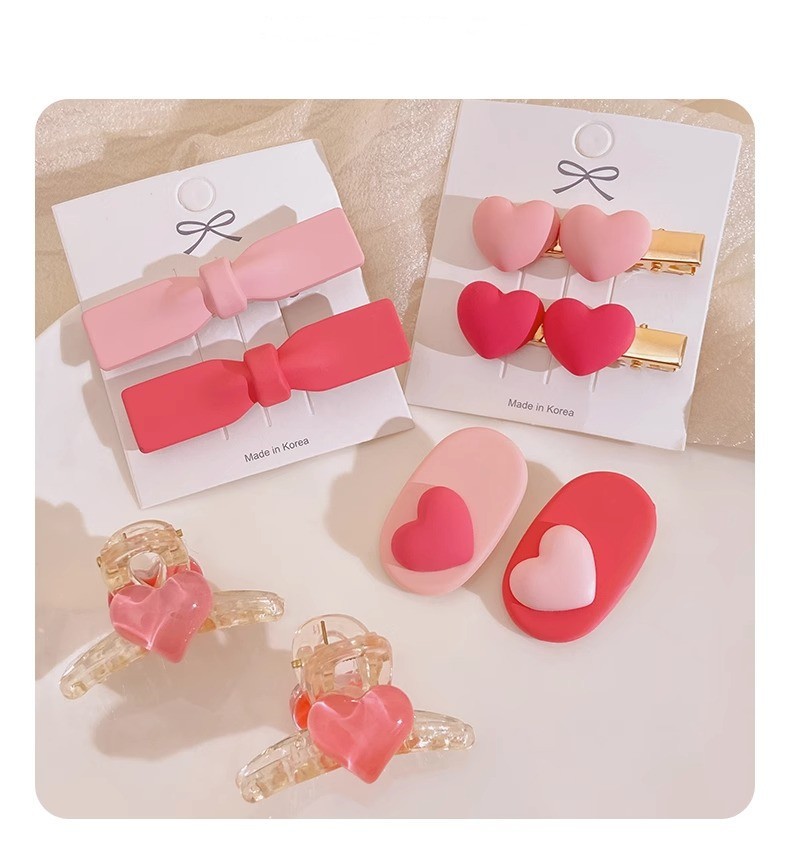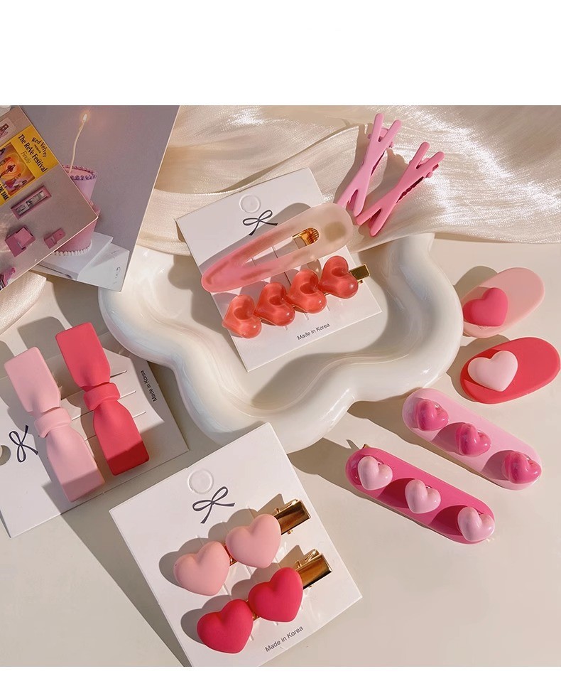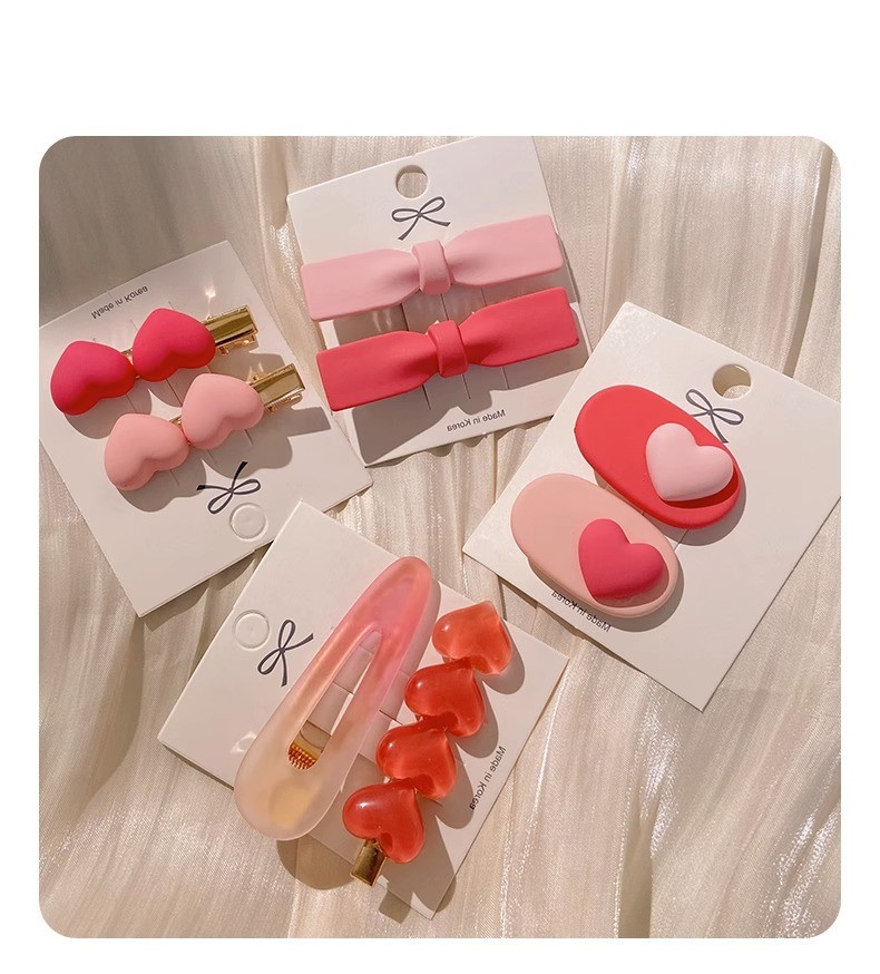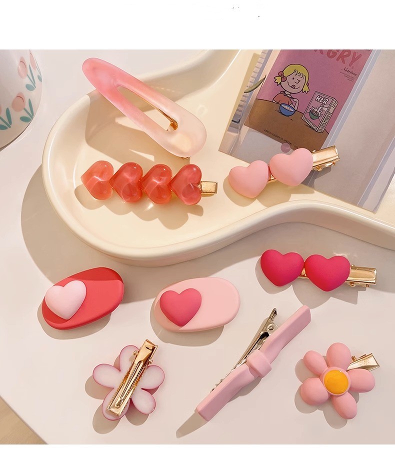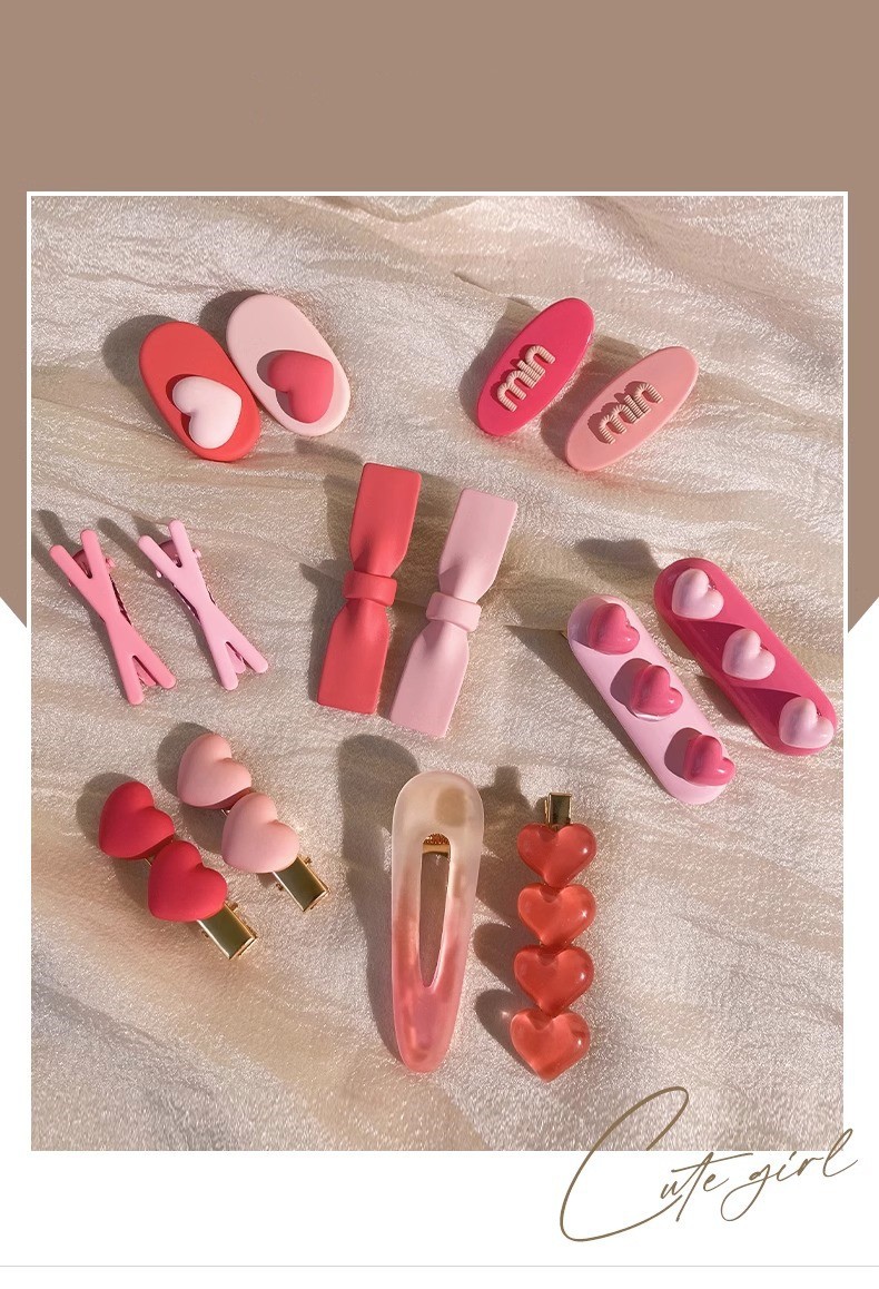 Pink love heart hair clips female cute duckbill clip hairpin sub side broken hair bangs clip children dopamine headwear