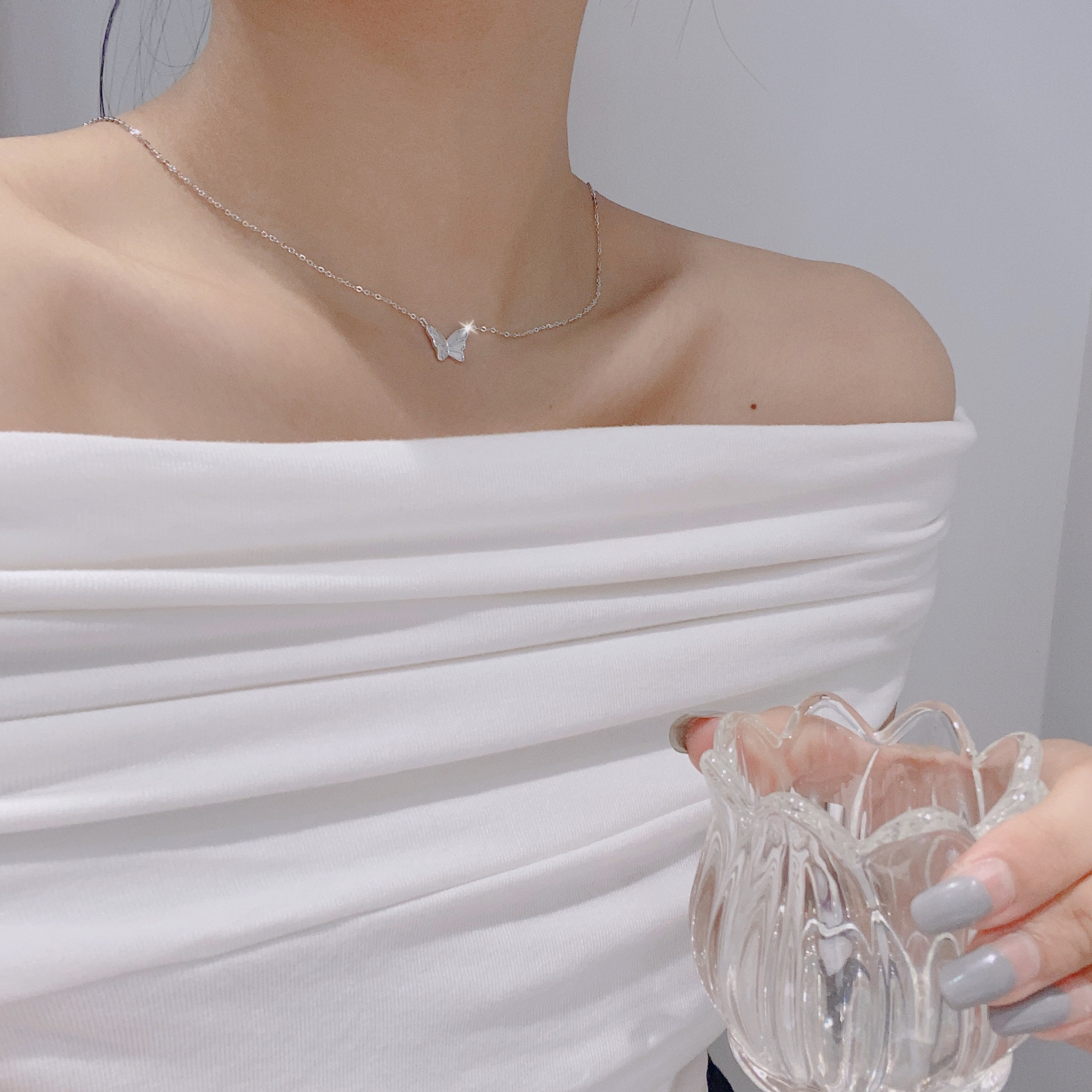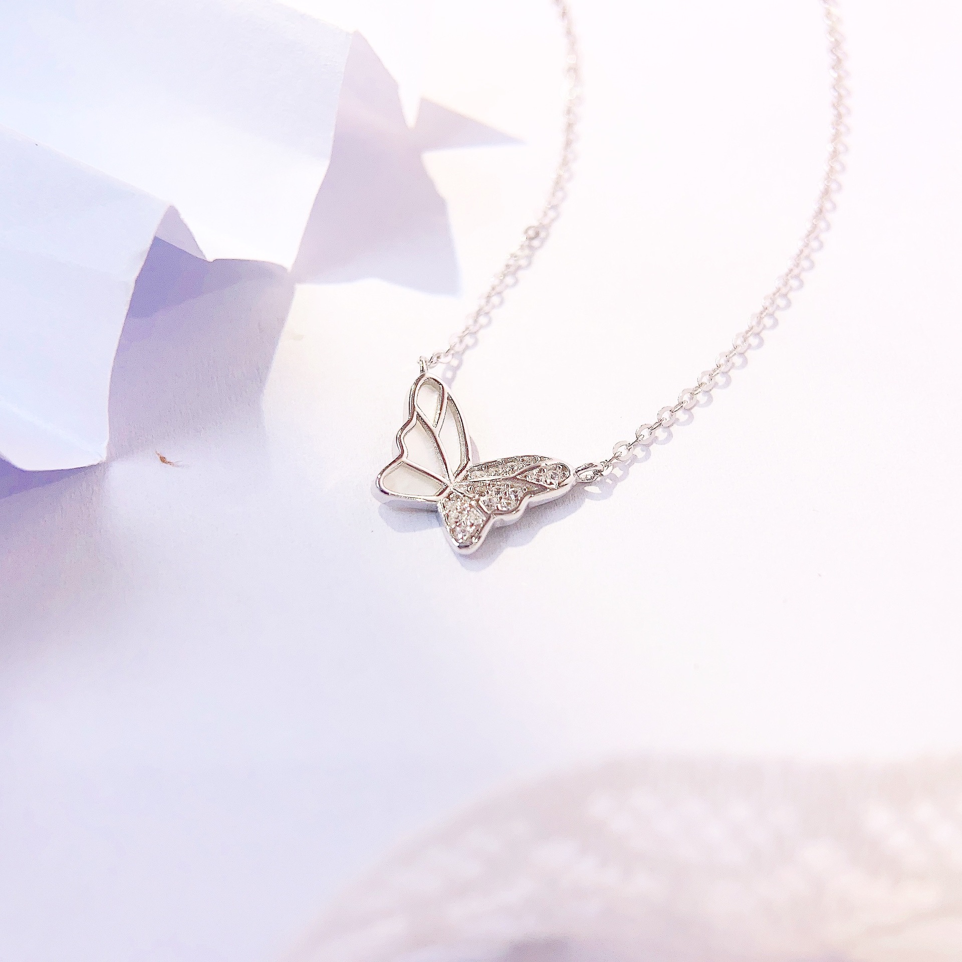 S925 sterling silver butterfly necklace