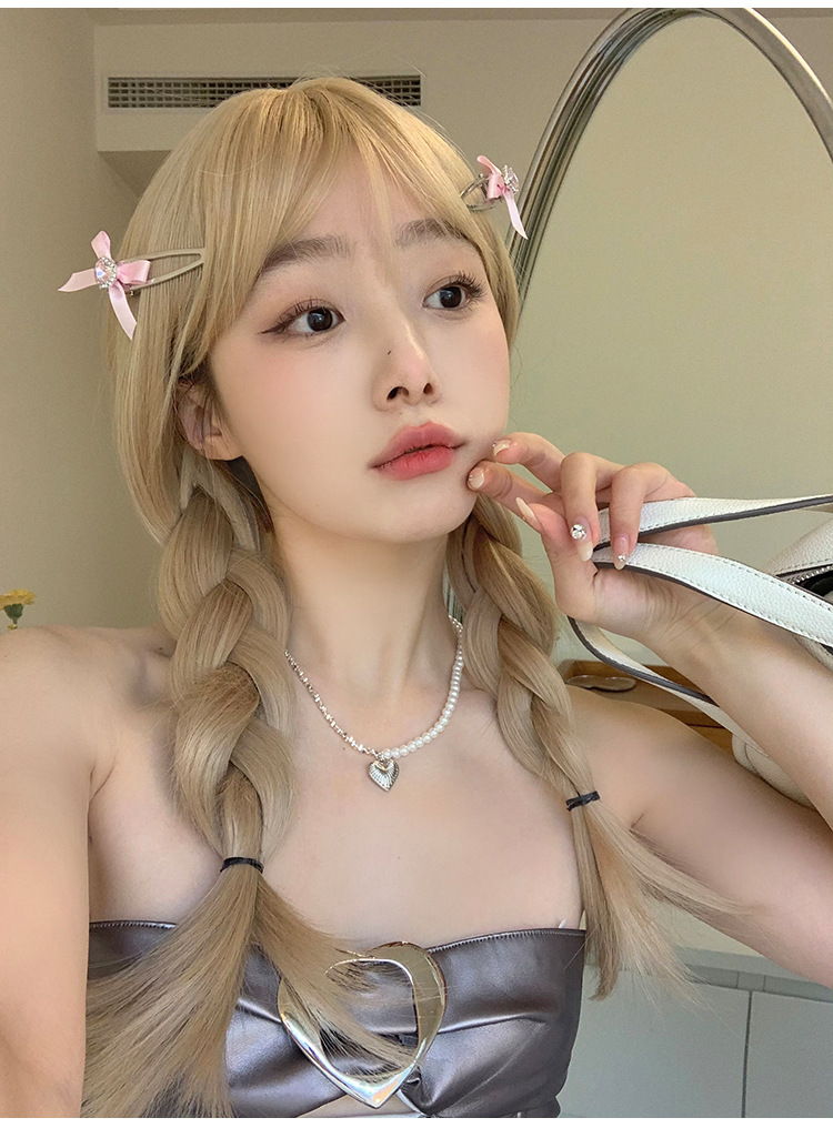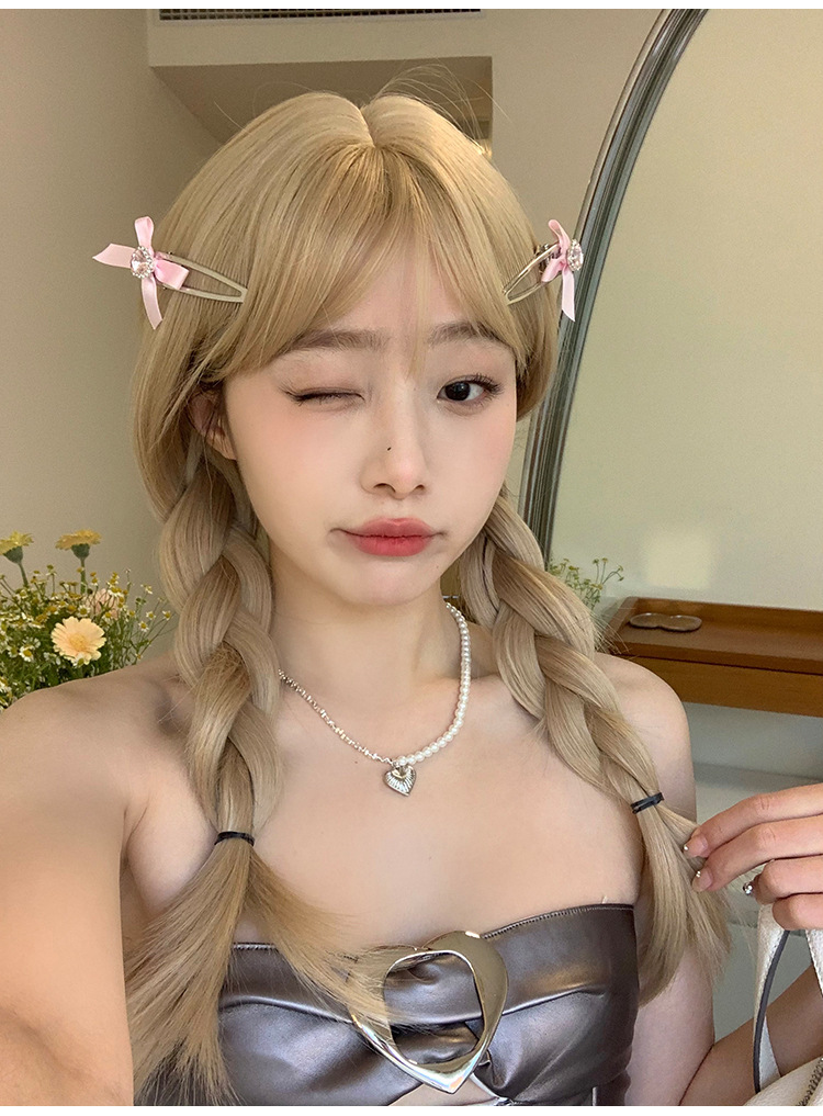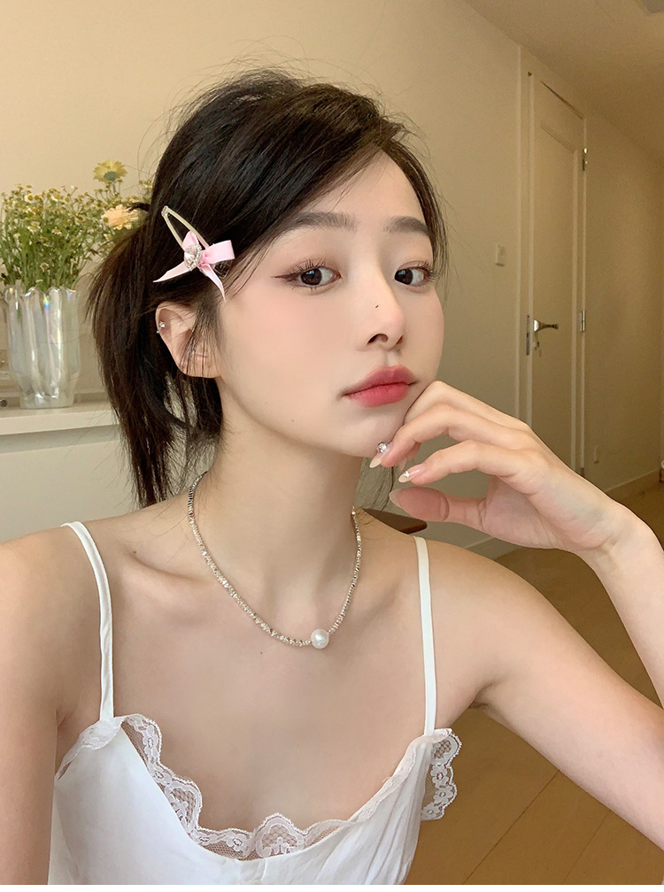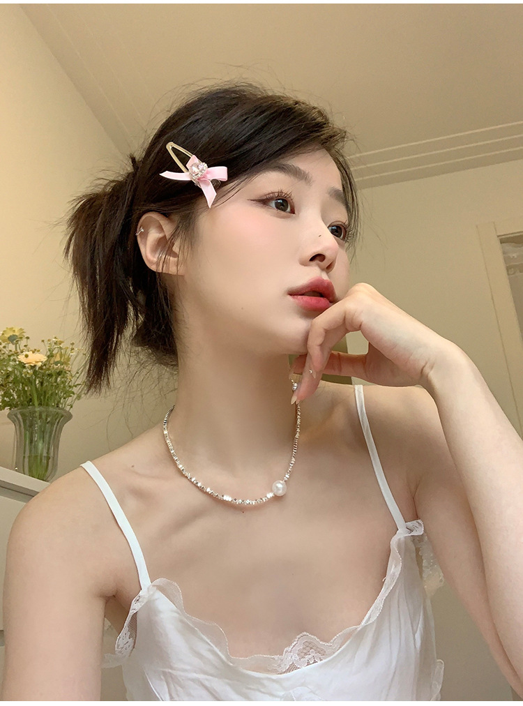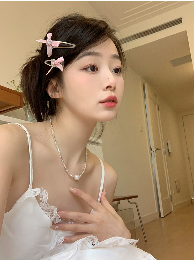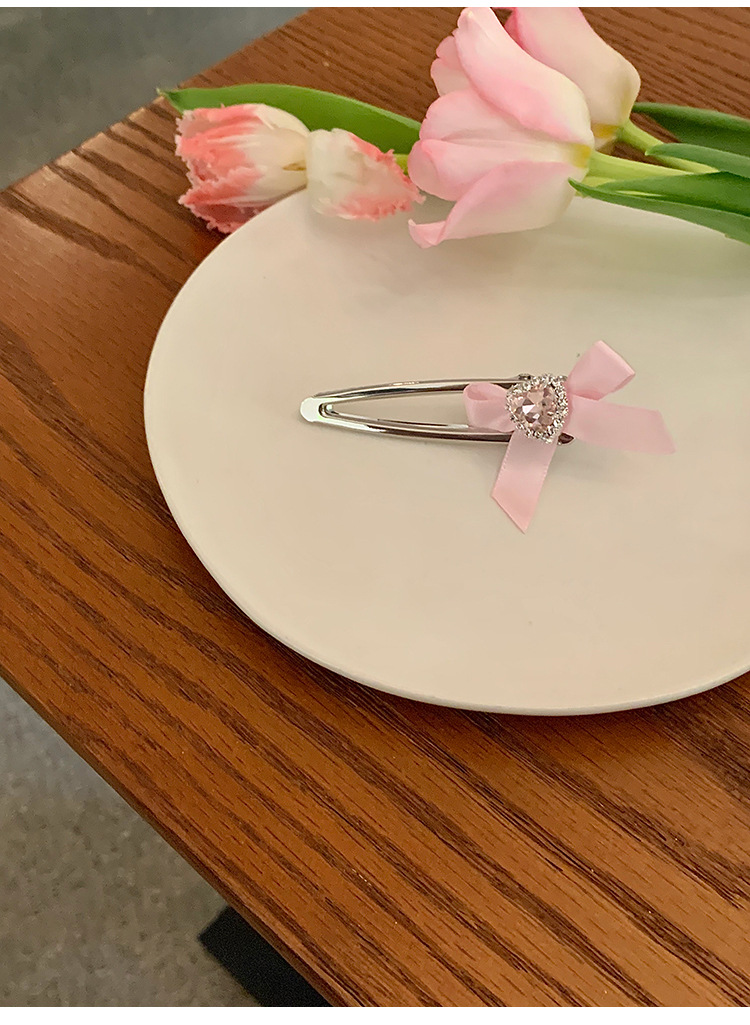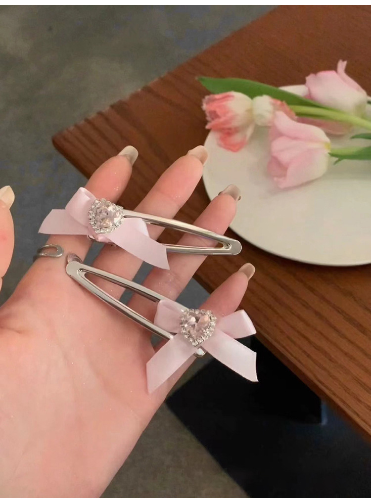 Simple pink love bow hairpin love rhinestone small clip girl hair accessories hairpin bangs clip bb chuck