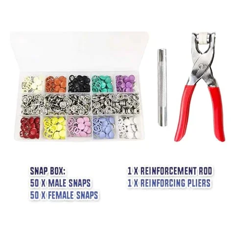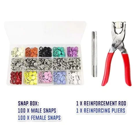 This clever kit includes a variety of snap button types and a heavy-duty plier that enables you to seamlessly fasten buttons in no time. The kit allows you to have a precise and impressively stable fastening at all times in just an easy clamping. Saving you from the complicated and time-consuming methods like hammering, sewing or cutting button-holes that only end up uneven. Suitable to be applied on clothes, hats, bags, baby clothes and jumpsuits, raincoats, pet clothes, quilt covers and other different DIY crafting or custom making projects.