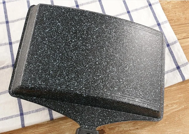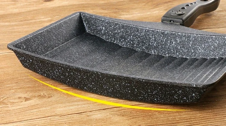 Our Wave Bottom Egg Rolling Pan features a surface made of maifanite stone, known for its excellent heat conduction properties and durability. The inner layer consists of an aluminum alloy core, which ensures even heat distribution for consistent cooking results.