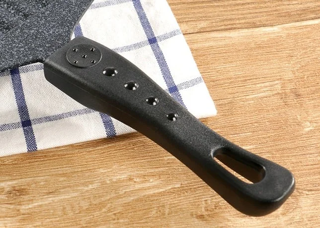 The imitation woodgrain handle adds a touch of elegance and charm to your cooking experience. Plus, it stays cool to the touch, so you can flip, roll, and shake with confidence!