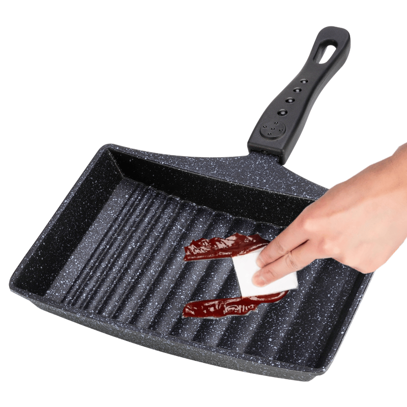 The wave-like design of the pan's bottom makes flipping your egg rolls a breeze. Easily and quickly roll up anything you desire. Plus, when using this pan to sear other foods, it leaves behind beautiful cooking marks, adding a touch of culinary artistry to your dishes.