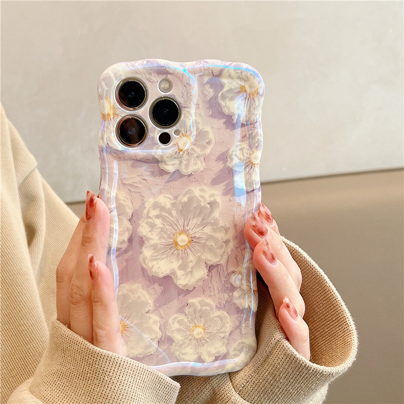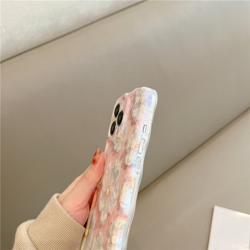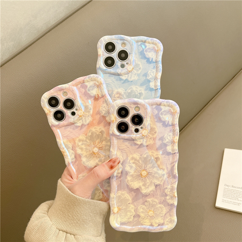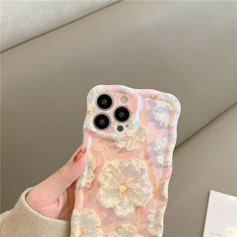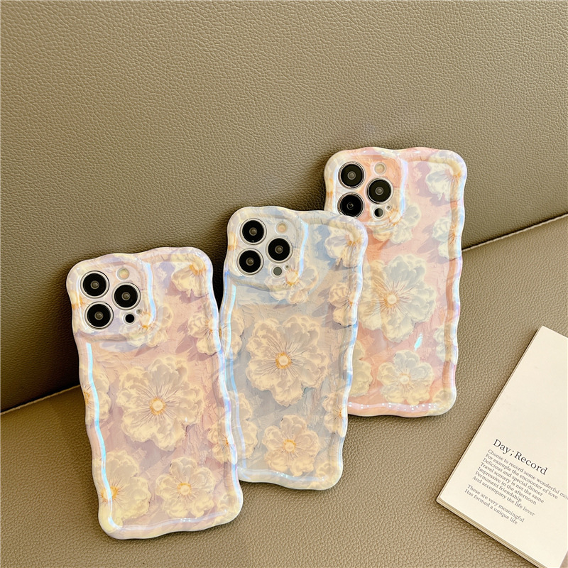 Wavy Edge Laser Floral Flowers Phone Case for iPhone 14 Pro Max 13 12 Pro Max 11