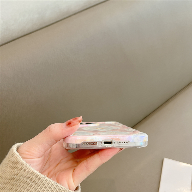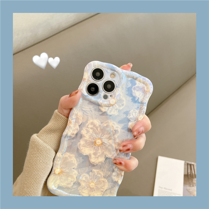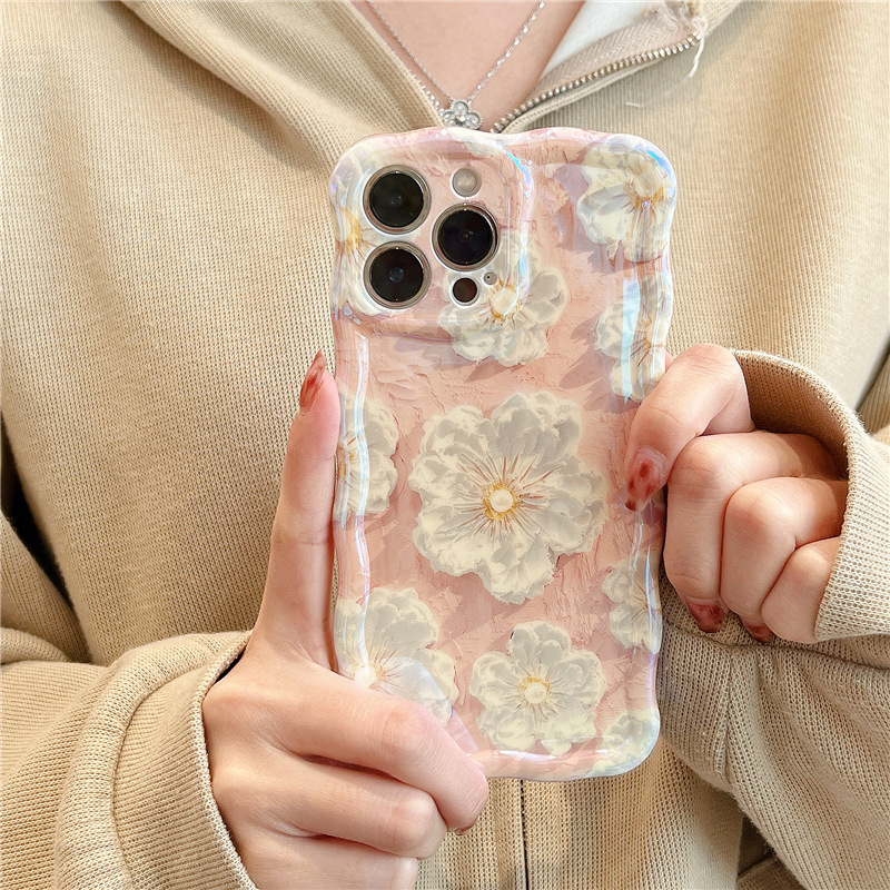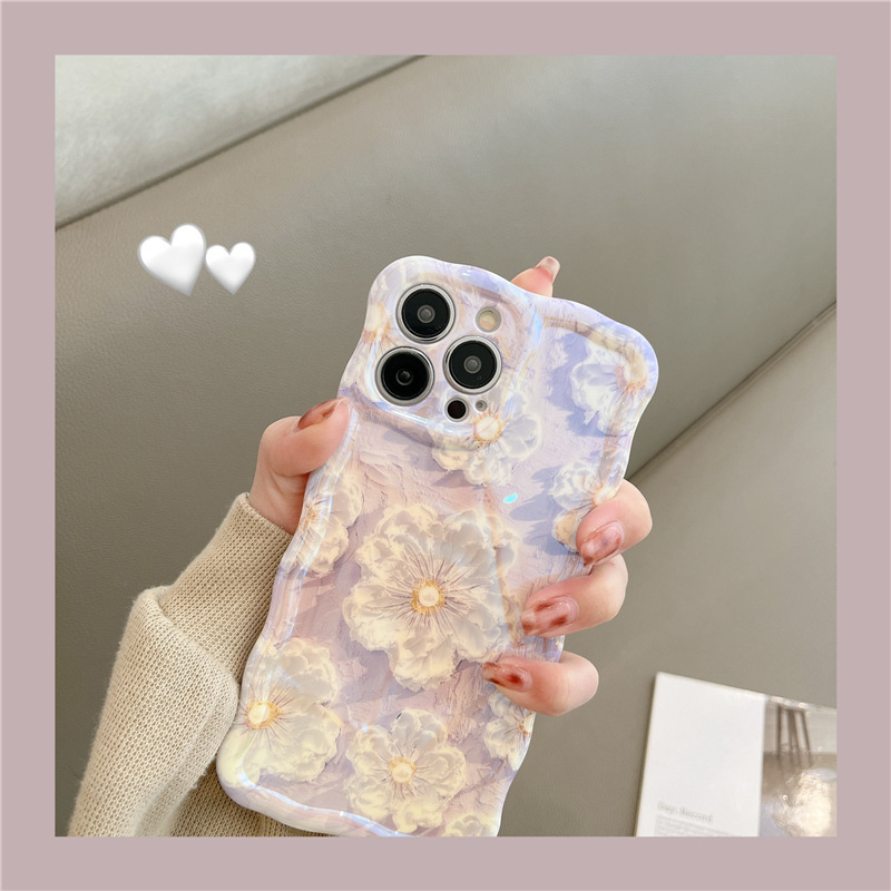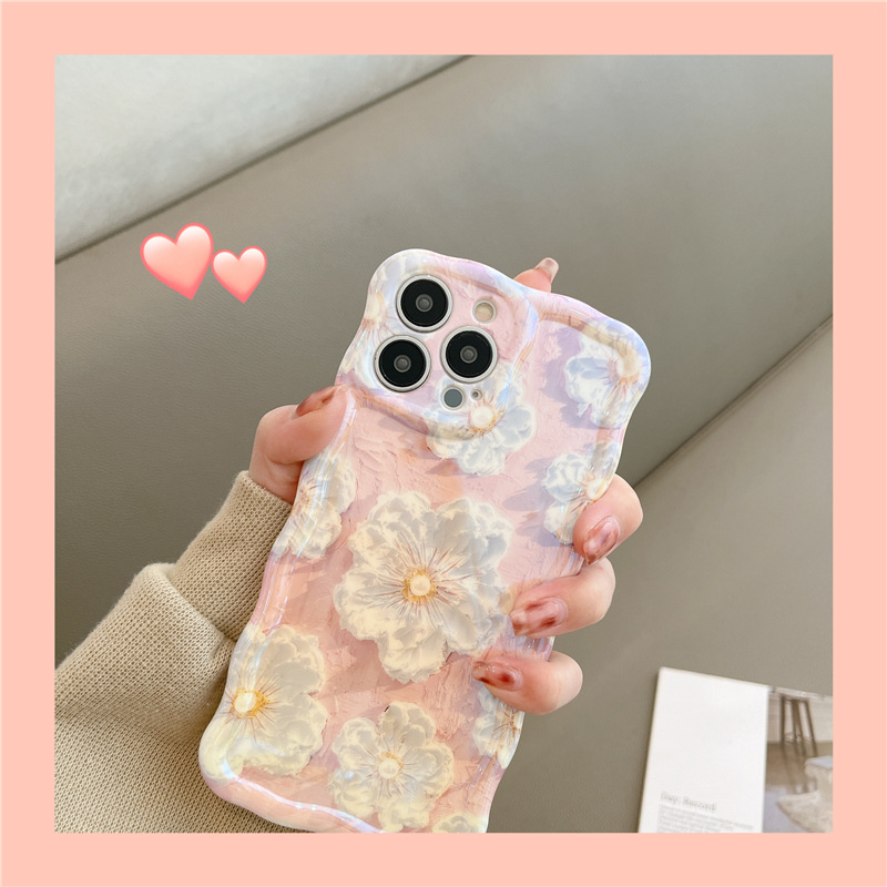 Wavy Edge Laser Floral Flowers Phone Case for iPhone 14 Pro Max 13 12 Pro Max 11